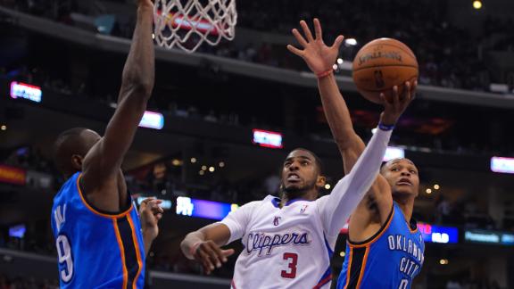 Ibaka, who shot 9 of 10 in the Thunder's Game 3 win, got his fourth foul, along with Westbrook in the third. The Clippers came as close as eight points before Reggie Jackson's 3-pointer beat the shot clock to keep the Thunder ahead 75-63 going into the fourth.