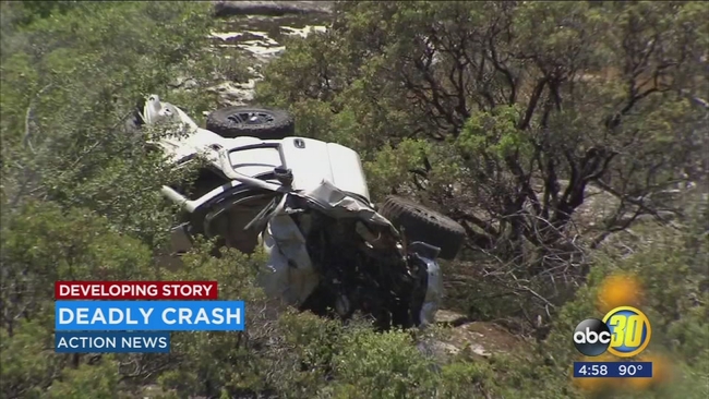 FRESNO, Calif. (KFSN) -- Two Clovis men are dead and one was airlifted with major injuries Tuesday after their car tumbled off Highway 168 and plunged more than 600 feet down a ravine.