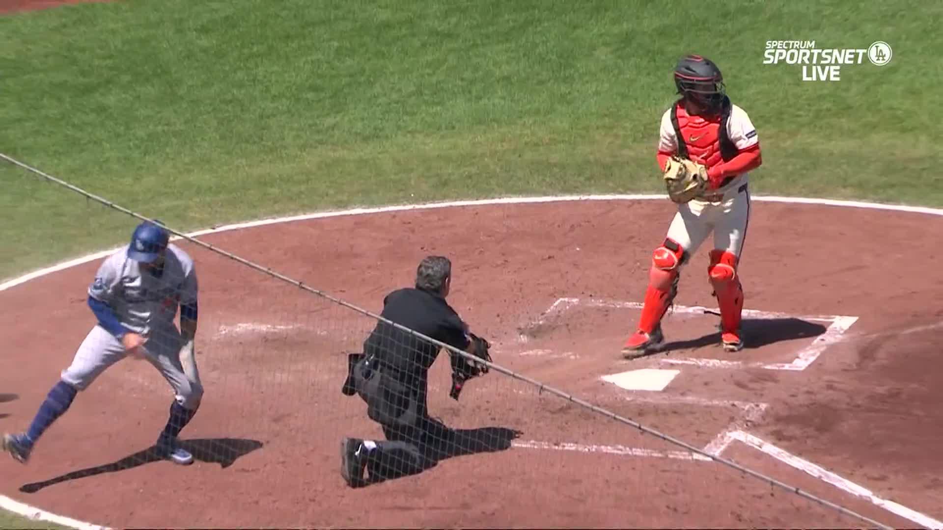 Held to one run in the first two games of the series, the Dodgers jumped out to a 1-0 lead on Rushing's RBI single off Giants starter Logan Web with two out in the second.