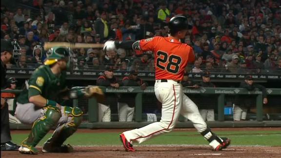 Duggar drew a leadoff walk. After Brandon Belt struck out, Andrew McCutchen singled and Brandon Crawford popped up. Posey followed with a sharp single to left.