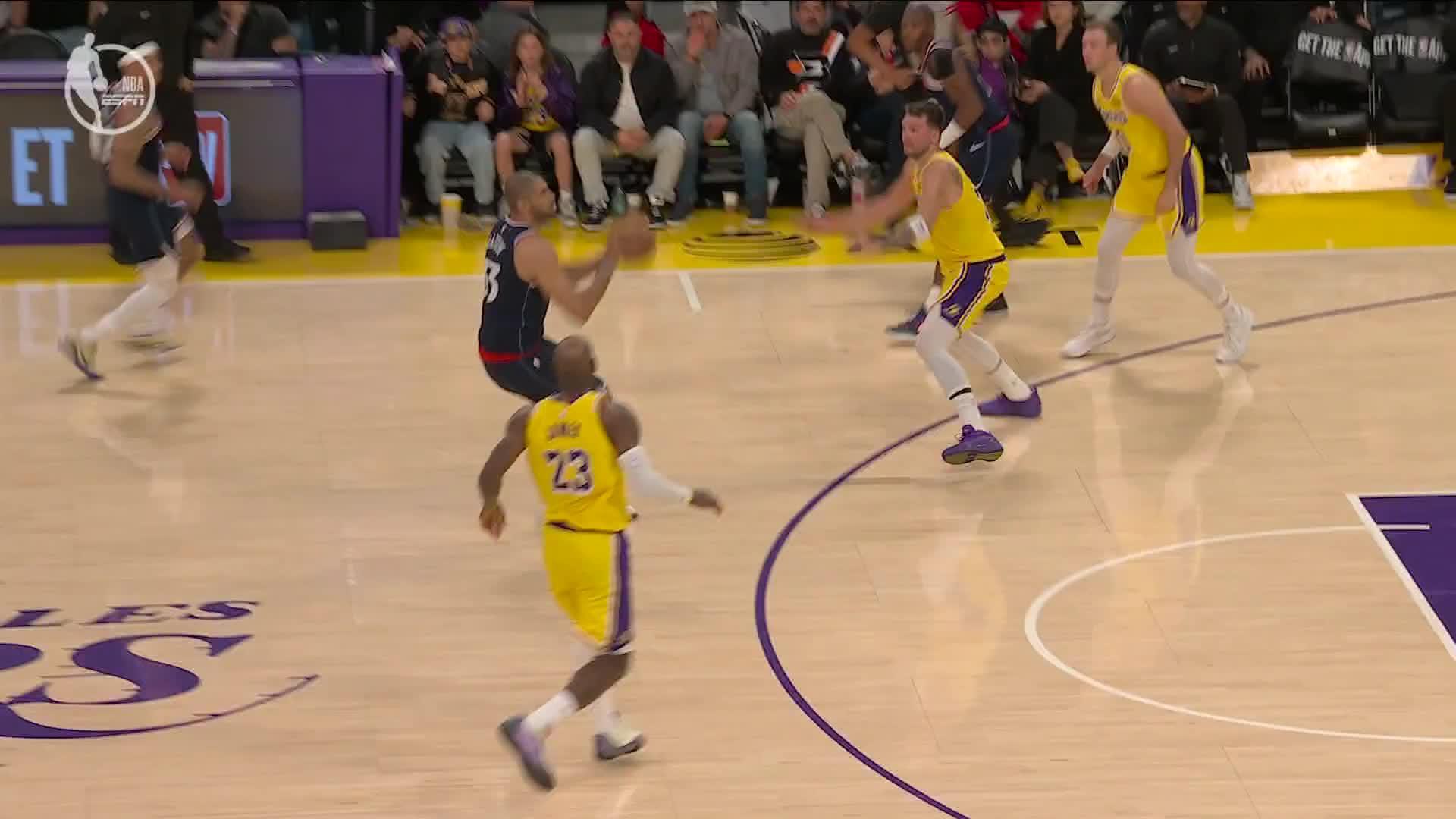 Doncic, James and Reaves were able to play together for only the 11th time in the Lakers' 55 games this season, thanks to a rare moment of full health for the Lakers coming out of the break. They responded with a prolific offensive performance, even while James managed just two points in the second half.