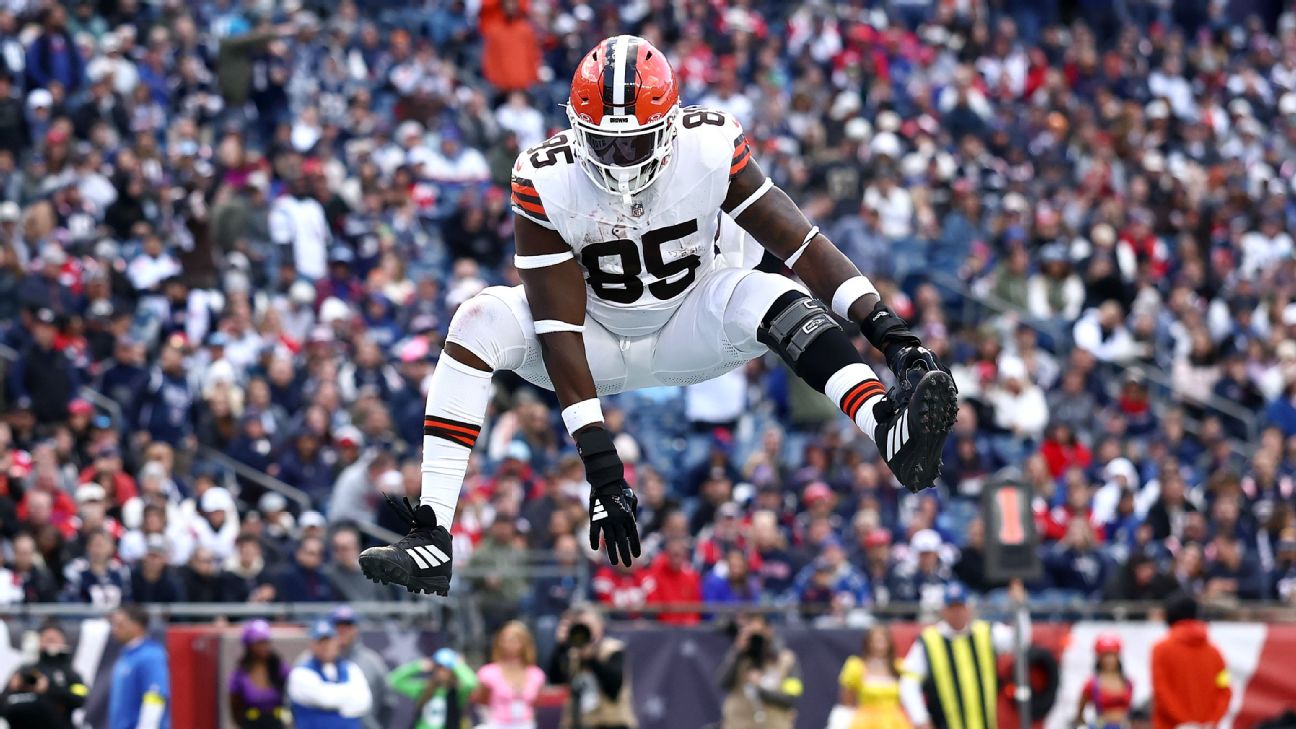 The Cleveland Browns lost 32-13 to the New England Patriots, but there was a moment to celebrate for Njoku on National Tight-End Day as he weaved through a sea of bodies to catch Dillon Gabriel's bullet touchdown pass with an acrobatic jump.
