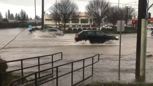 WATCH: Cars drive through flooded roads in Sanger