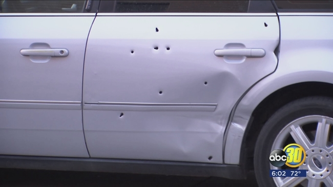 Another shooting ended at Fulton and Merced streets Friday afternoon. One car has multiple gunshots leaving bullet holes right next to the driver's door.