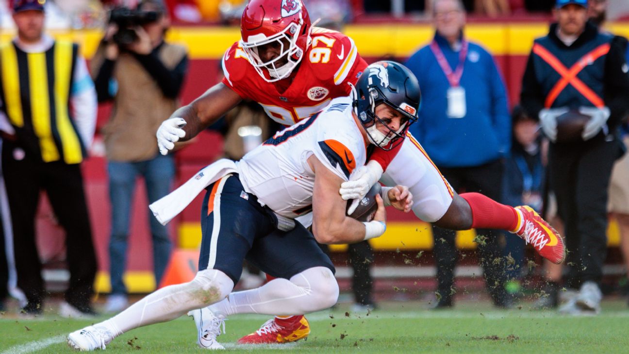 Bowen: This feels like an old-school matchup, featuring two of the top defenses in the league. Both Denver and Kansas City are allowing just over 17 points per game, while this Broncos unit leads the NFL with 46 sacks, and Denver is holding opposing offenses to a third-down conversion rate of 28.1%. Tough to find points here. Take the under.
