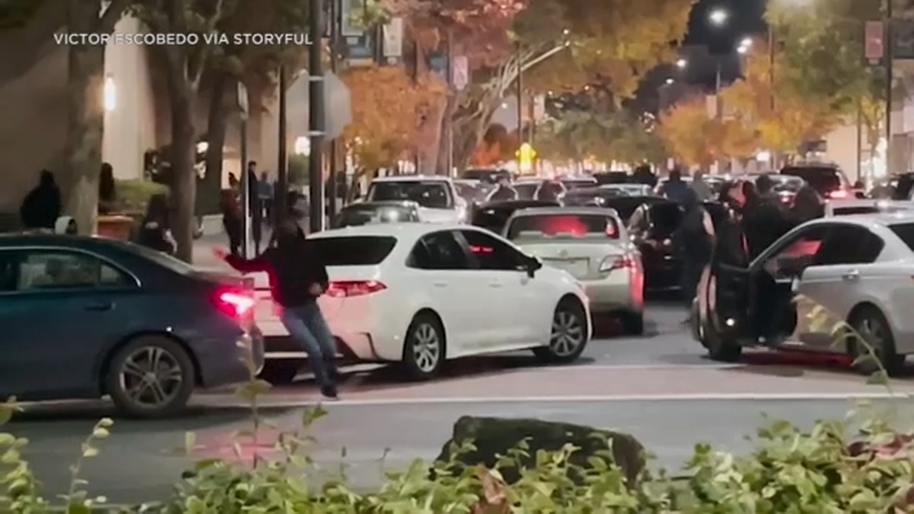 Also in Long Beach, dozens of looters could be seen later breaking into a Hot Topic store at the Pike Outlets down the street. Police were not seen near the area as the looting occurred.