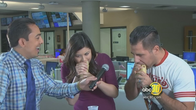 Action News Anchors Tony Cabrera and Alena Lee got the feeding frenzies started early on Facebook Live. Martinez took down a breakfast burrito in less than a minute.