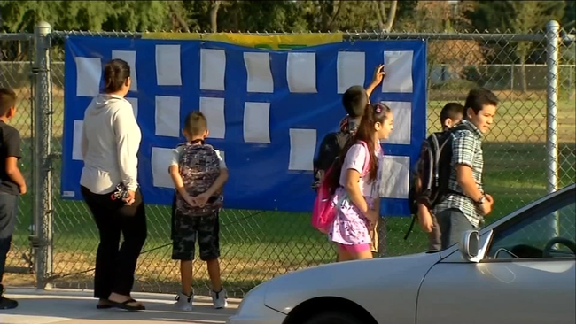 It's a big day for 4-year-old Mikey Padilla. He's starting kindergarten at his new school, Riverway Elementary in Visalia. He wants to make a good impression, so he brought a gift-- an apple.